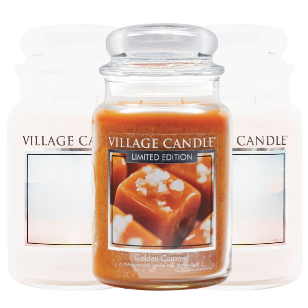 Lassen Sie sich mit 3 köstlichen Village Candle Large Jar überraschen, darunter mindestens der warme, süße Duft Golden Caramel 🍎🍂