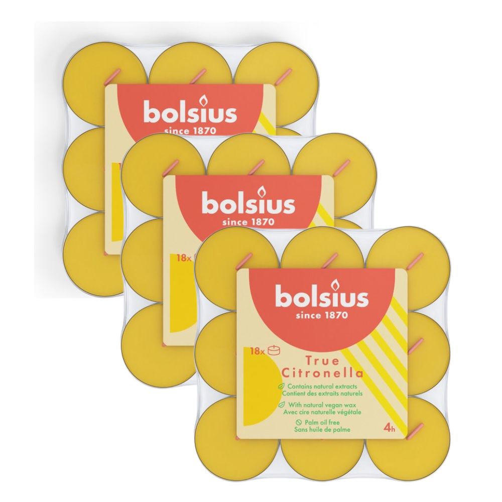 Bolsius Citronella duftende Teelichter 3 x 18 – Genießen Sie laue Sommerabende ohne Stechmücken!