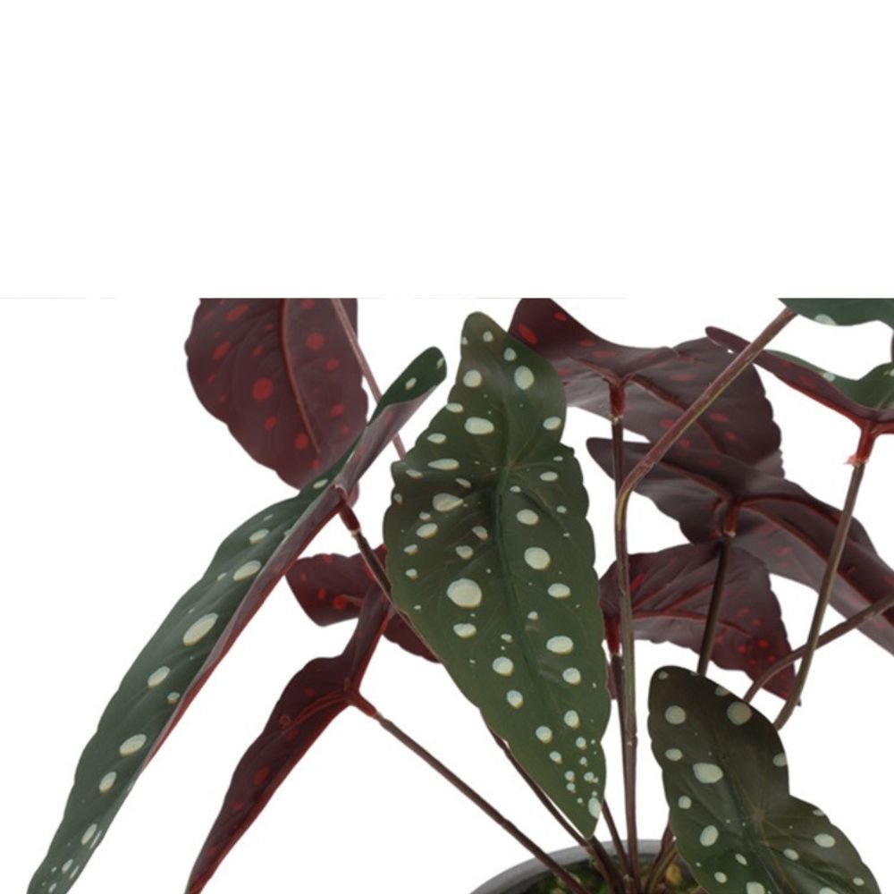 Mögen Sie Pflanzen mit Charakter, aber haben Sie keine Lust auf viel Aufwand? Dann ist diese künstliche Begonia Maculata, auch bekannt als Tüpfelpflanze, genau das Richtige für Sie! Die auffälligen Blätter mit weißen Punkten setzen einen verspielten und trendigen Akzent in Ihrem Interieur – und sie sind völlig pflegefrei.