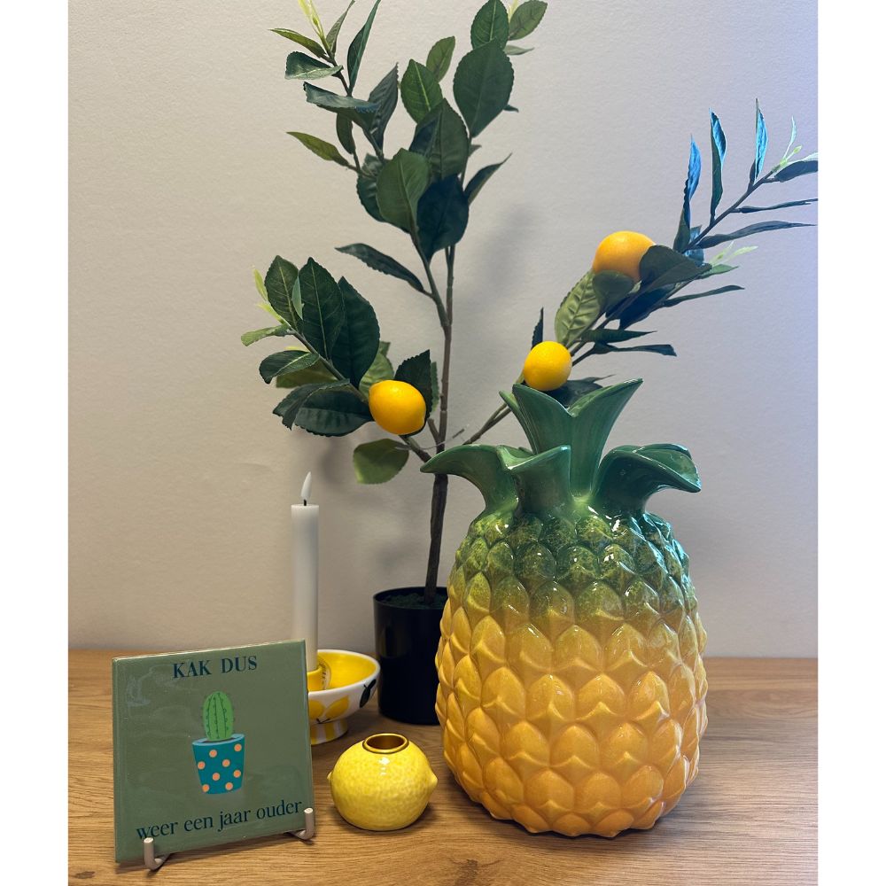 Countryfield Kunstpflanze Zitrone Bringen Sie die frische Energie von Zitrusfrüchten in Ihr Zuhause mit dieser schönen Kunstpflanze voller Zitronen! Mit ihren leuchtend grünen Blättern und realistischen Details bringt diese Pflanze ein sonniges, mediterranes Flair in Ihr Interieur – ohne dass Sie sich um die Pflege kümmern müssen. Aus hochwertigen Materialien gefertigt, strahlt diese Zitruspflanze Luxus und Stil aus. Ob Sie es modern oder klassisch mögen, diese wartungsfreie Kunstpflanze sorgt das ganze Jahr über für einen frischen und fröhlichen Look.✨ Tipp: Stellen Sie die Pflanze in einen schönen Topf mit Hydrokörnern, um einen noch realistischeren und spielerischen Effekt zu erzielen. Entdecken Sie unsere Kunstpflanzenkollektion und bringen Sie einen Hauch von natürlicher Eleganz in Ihre Einrichtung! Größe L37 B37 H 40 CM
