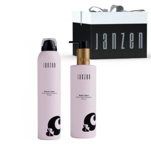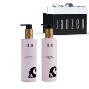Eine schöne Geschenkbox, gefüllt mit allem, was man im Badezimmer braucht. Die Box hat einen schönen bunten Deckel und eine festliche goldene Schachtel. Erhältlich in den beiden beliebtesten Duftlinien der &C x JANZEN Kollektion.
