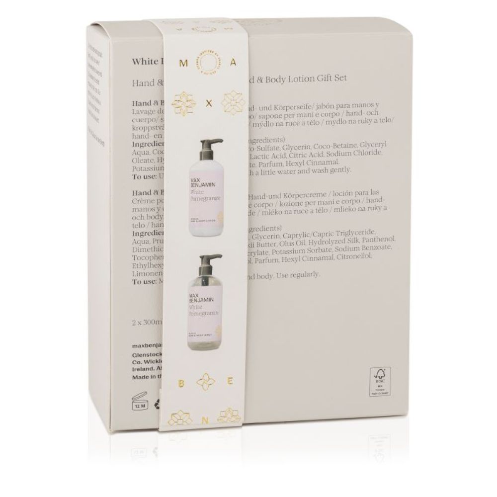 Ein köstlicher Verwöhnmoment in stilvoller Verpackung! Dieses luxuriöse Geschenkset der irischen Marke Max Benjamin enthält ein pflegendes Hand & Body Wash und eine passende Lotion – beide 300 ml.