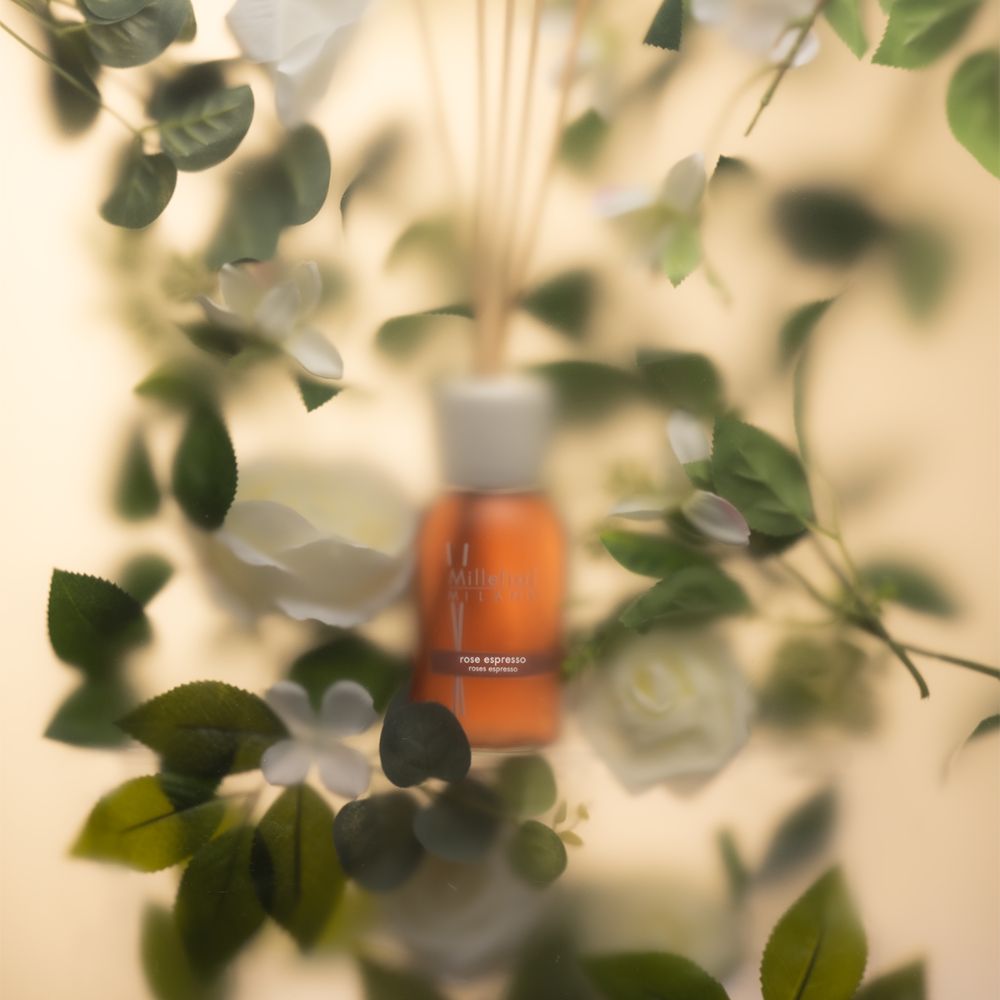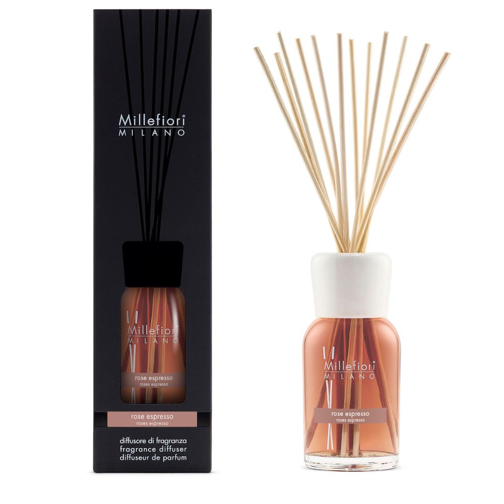 Millefiori Milano Duftstäbchen Rose Espresso 500 ml sorgen für 12-15 Monate köstlichen Duft in Ihrem Zuhause. Die Millefiori Duftstäbchen bringen die köstlichen und hochwertigen Millefiori Düfte auf einfache und sichere Weise in Ihr Zuhause. Die Duftstäbchen werden in einer luxuriösen schwarzen Schachtel geliefert und eignen sich daher sehr gut zum Verschenken. Die Duftstäbchen haben eine Gesamthöhe von 37 cm und eine preiswerte Nachfüllpackung ist ebenfalls erhältlich.