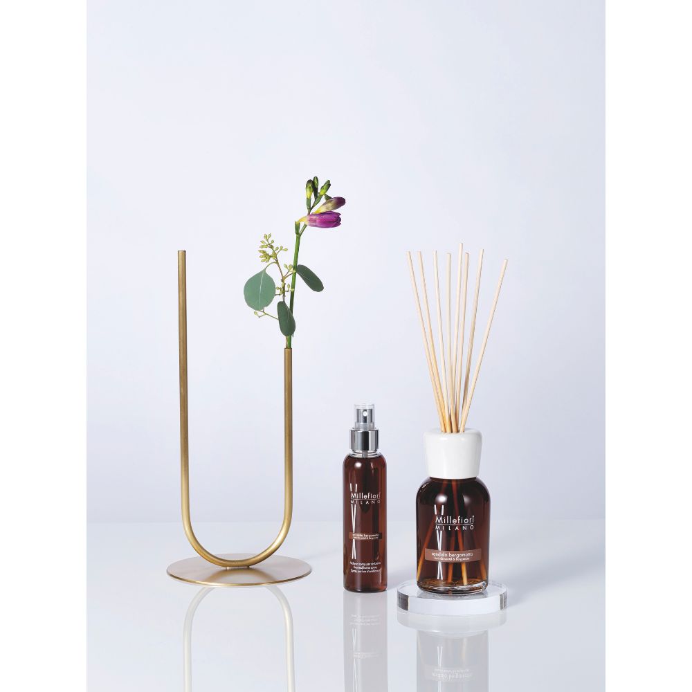 Millefiori Milano Duftstäbchen Sandalo Bergamotto 500 ml sorgen für 12-15 Monate köstlichen Duft in Ihrem Zuhause. Die Millefiori Duftstäbchen bringen die köstlichen und hochwertigen Millefiori Düfte auf einfache und sichere Weise in Ihr Zuhause. Die Duftstäbchen werden in einer luxuriösen schwarzen Box geliefert und eignen sich daher sehr gut zum Verschenken. Die Duftstäbchen haben eine Gesamthöhe von 37 cm und eine preiswerte Nachfüllpackung ist ebenfalls erhältlich. Sandalo Bergamotto ist ein holziger Duft mit einem Hauch von Zitrusfrüchten und Lavendel. Sandalo Bergamotto von Millefiori gehört zur Natural Collection. Alle Düfte der Natural-Kollektion von Millefiori bestehen aus 3 Noten. Diese sind die Kopfnote, die Herznote und die Basisnote. Kopfnote : Bergamotte, Lavendel, Grapefruit, Zitrone Herznote : Koriander, rote Früchte, Jasmin Basisnote : Patchouli, Guajakholz, Vanille