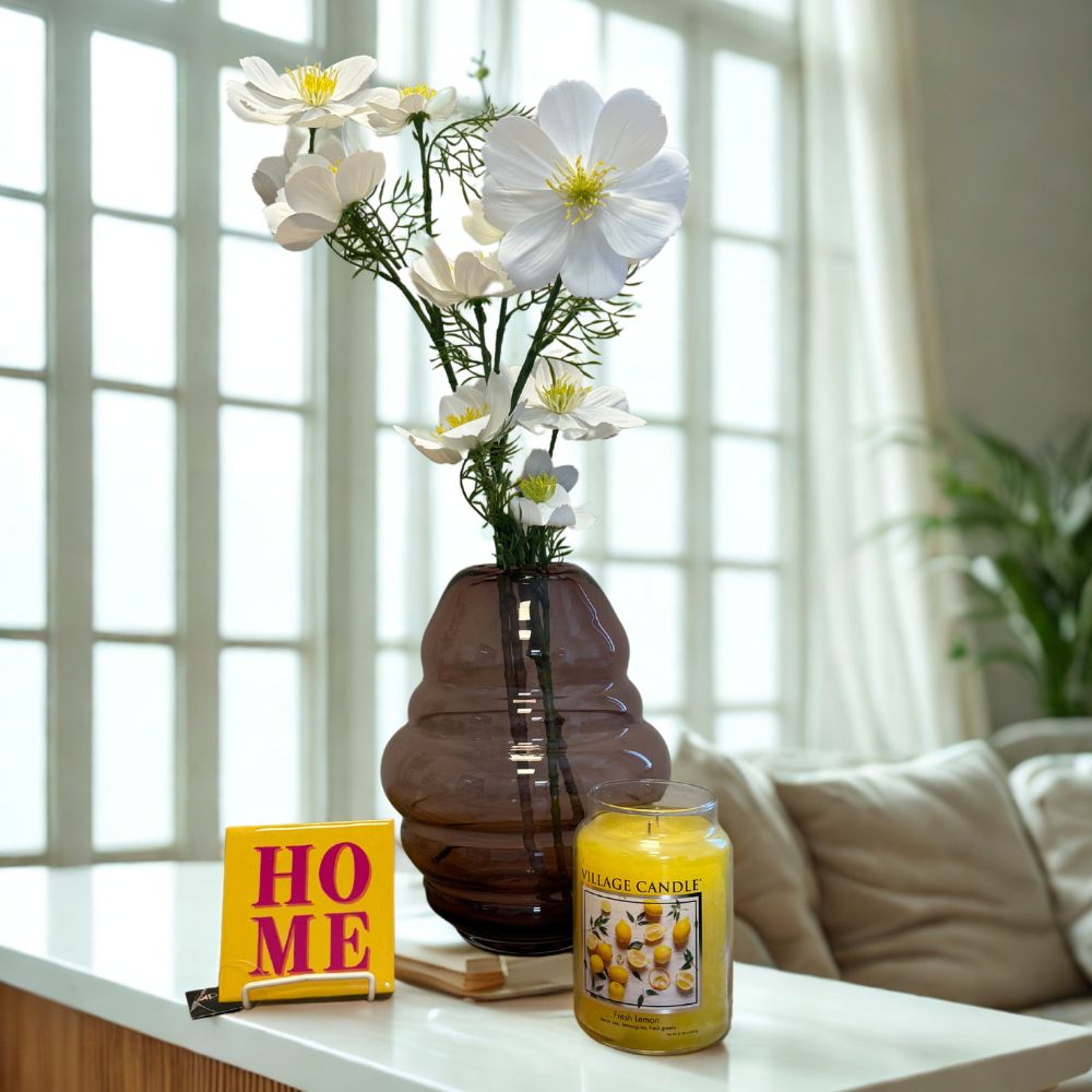 Village Candle Large Jar Fresh Lemon Für mindestens 170 Stunden den köstlichen Duft von Fresh Lemon in Ihrem Zuhause. Das große Glas von Village Candle bietet maximalen Duft und einen perfekten Pool dank der 2 Dochte. Jedes Glas hat einen silbernen Deckel, der perfekt schließt, so dass Sie das Glas wiederverwenden können, auch wenn die Kerze fertig ist. Um die Kerze so lange wie möglich zu genießen und Geruch zu vermeiden, ist es ratsam, den Docht kurz zu halten (max. 0,3 cm). Village Candle Fresh Lemon versetzt Sie in die Stimmung eines sonnigen Tages. Die Sonne fällt durch ein offenes Fenster und eine Sommerbrise küsst Ihre Haut. Der saure Saft von Zitronen tanzt über Ihre Küchentheke, während Sie Segmente in einen Krug mit Eiswasser fallen lassen. Ein erholsamer Tag steht bevor, während sich Ihr Raum mit leuchtender Zitronenessenz und dem Aroma von frisch geerntetem Gemüse füllt, das über Ihre Küchentheke verstreut ist.