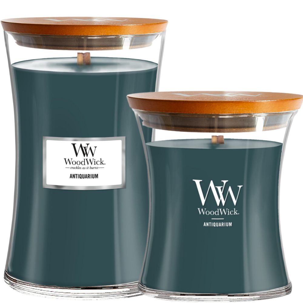 WoodWick Antiquarium. Treten Sie ein in eine Welt voller Geheimnisse und Luxus, in der ein verstecktes Raucherzimmer hinter einem Bücherregal aus der Vergangenheit zum Leben erwacht. Der raffinierte Duft von weißem Kardamom, Tabakblättern und warmen Holztönen umhüllt Sie, als ob Sie einen geheimen Ort entdecken würden, an dem einst große Ideen und Geschichten gediehen. Ein Duft, der die Anziehungskraft eines vergoldeten Zeitalters in sich trägt.