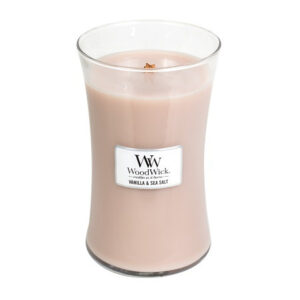WoodWick Ellipse Vanilla & Sea Salt Nicht weniger als 50 Stunden des köstlichen Duftes Vanilla & Sea Salt in Ihrem Haus. Die Kerze hat den typischen Holzdocht und kommt in einem schönen Glas mit Holzdeckel. Die Größe der Kerze ist 11,5 cm breit 9 cm hoch und 19,5 cm lang. Woodwick Vanilla Sea Salt ist ein Duft auf Vanillebasis mit einem Hauch von Sommerblumen am Meer. Ein einzigartiger Duft mit der Kombination von süß und salzig.