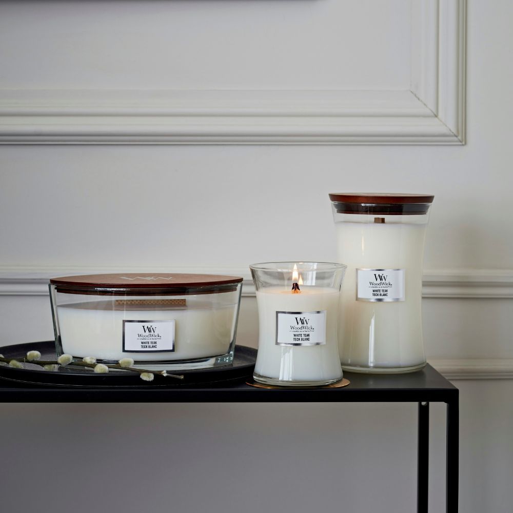 Der exklusive Pluswick® Innovation Holzdocht sorgt für das beruhigende Geräusch eines knisternden Kamins und eine schnelle Duftverbreitung.