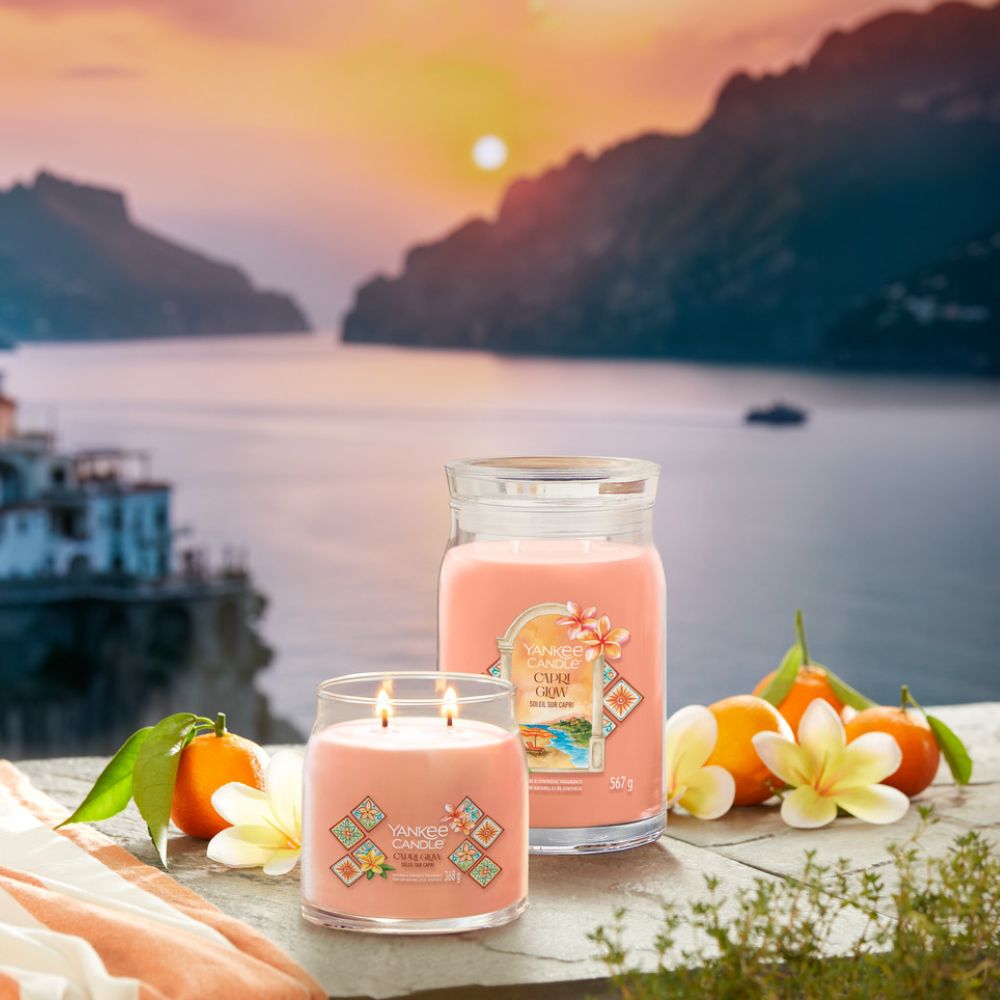 Yankee Candle Gefüllte Votivkerze Capri Glow Eine gefüllte Votivkerze von Yankee Candle sorgt mindestens 12 Stunden lang für einen herrlichen Duft in Ihrem Zuhause! Yankee Candle Capri Glow. Capri Glow ist ein blumiger Duft, der mit sonnengetränktem Amber, Frangipani-Blüten und einem Hauch von Zitrusfrüchten an die sommerlichen Sandstrände von Capri erinnert.