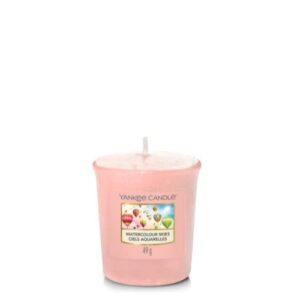 Yankee Candle Filled Votive Watercolour Skies Eine gefüllte Votivflasche von Yankee Candle sorgt für mindestens 12 Stunden herrlichen Duft in Ihrem Zuhause! Yankee Candle Watercolour Skies entführt Sie in einen fröhlichen Ballon, der in blumigen Farben am sommerlichen Horizont erscheint.