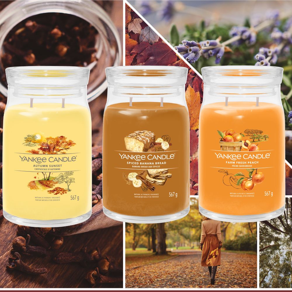 Genießen Sie die Gemütlichkeit des Herbstes mit diesem besonderen Benefit-Bundle von Yankee Candle. Drei köstliche Düfte und warme Farben, die perfekt zum Herbst passen, sind jetzt im aktualisierten Signature Large Jar erhältlich.