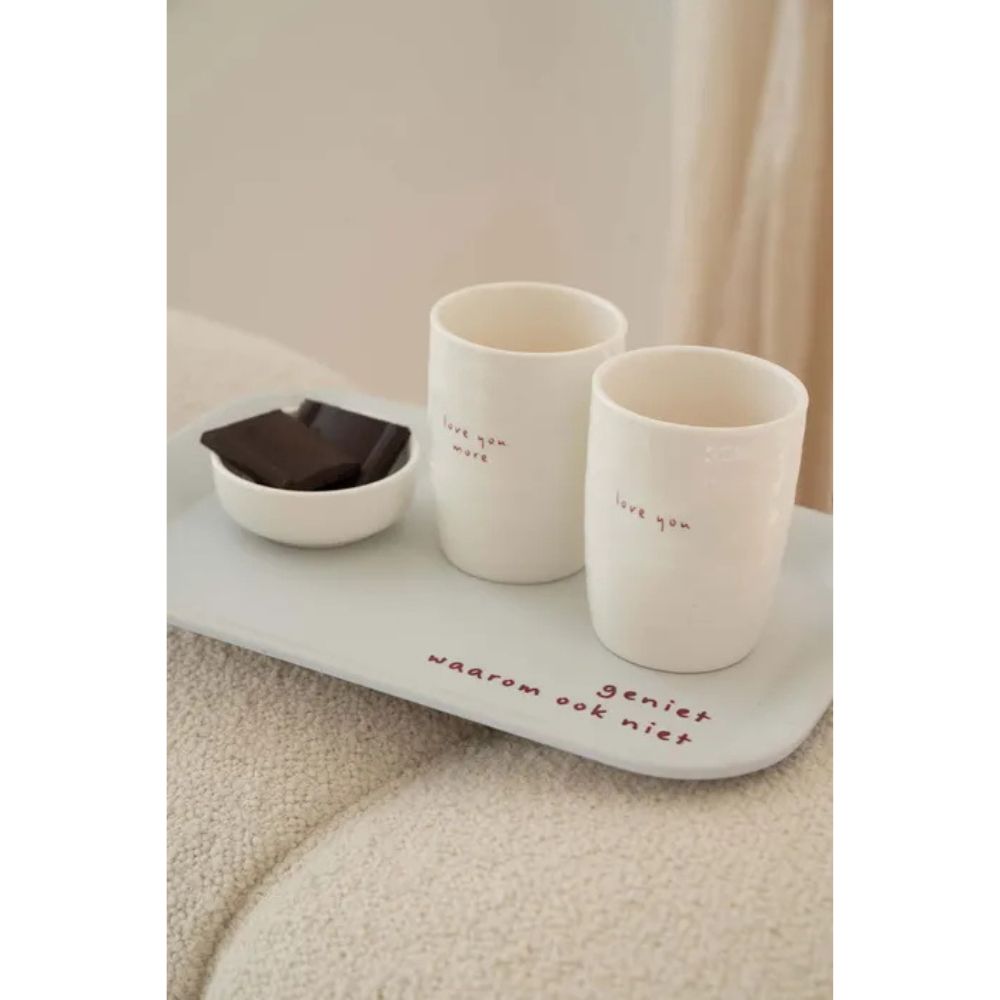 Wärmer kann man seine Gäste nicht willkommen heißen! Füllen Sie diesen edlen Becher von Zusss mit heißem Tee, Kaffee oder Schokomilch und machen Sie sich bereit für ein gemütliches Beisammensein auf der Couch. Die weiße Tasse ist mit der süßen Botschaft love you more in roten Buchstaben verziert, was sie für jeden Anlass besonders gemütlich macht. Mit einem Durchmesser von 8,5 cm und einer Höhe von 13 cm hat diese Tasse die perfekte Größe für eine große Tasse Ihres Lieblingsheißgetränks. Sie können diese Tasse auch schön mit anderen Steingutartikeln von Zusss für ein stilvolles Geschirr kombinieren. Schauen Sie sich diese auf unserer Website an und kombinieren Sie.