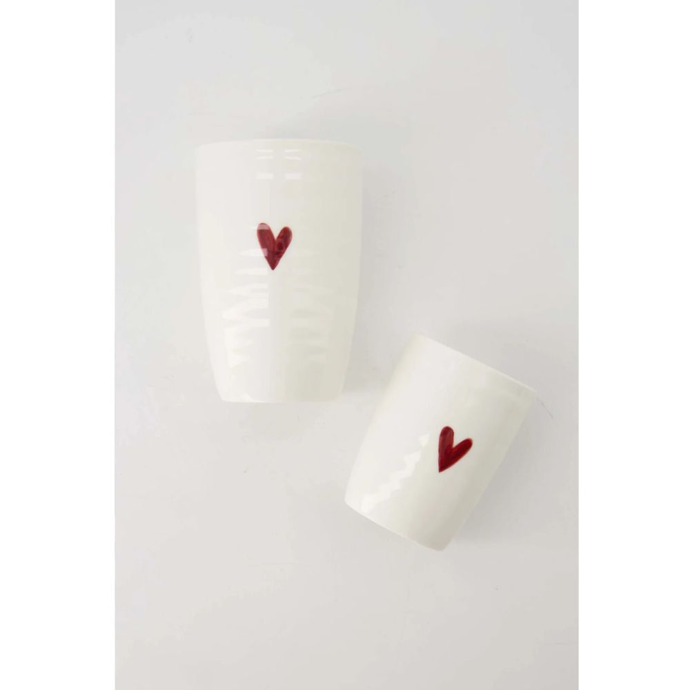 Beginnen Sie Ihren Tag mit einer kleinen Extraportion Liebe ❤️. Dieser schöne Becher ist schlicht weiß mit einem dezenten roten Herz. Perfekt für Kaffee, Tee oder heiße Schokolade ☕ . Dank seiner handlichen Größe können Sie ihn jeden Tag benutzen.