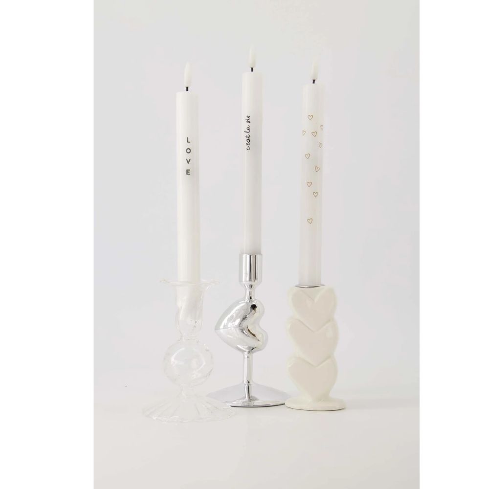 Bringen Sie Wärme und Gemütlichkeit in Ihr Zuhause mit diesem Set aus 2 LED-Kerzen von Zusss. Die Kerzen tragen den dezenten Schriftzug c’est la vie – ein verspieltes Detail, das perfekt zum Mix aus Weiß, Schwarz und Gold passt. Die sanften LED-Lichter schaffen eine gemütliche Atmosphäre, ganz ohne Feuer und Rauch.