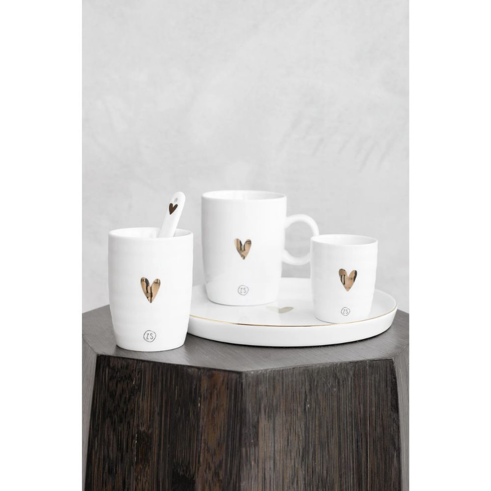 Aus diesem schönen Zusss-Becher mit goldenem Herz schmeckt eine Tasse Tee gleich noch ein bisschen besser.