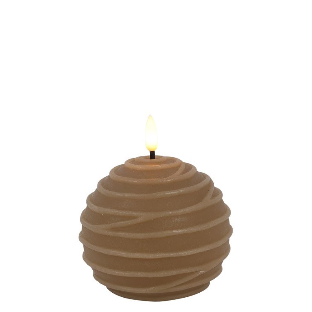 So gut wie echt, aber ohne Feuer! 🔥 Diese kugelförmige LED-Kerze von Countryfield ist mit einer Wachsschicht und subtilen Linien versehen, die einen super atmosphärischen und warmen Effekt erzeugen. Perfekt für eine gemütliche Ecke in Ihrem Zuhause!