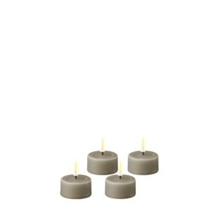 Deluxe Homeart Led Kerze Sand 7,5 x 12,5 cm Outdoor Diese led Kerze hat einen Durchmesser von 10 cm und eine Höhe von 10 cm Deluxe Homeart hat eine innovative led Kerze entwickelt, die sich anfühlt und aussieht wie eine echte Kerze. Die Kerze ist mit einer Harzschicht überzogen, die ihr ein flüssiges Aussehen wie bei einer echten Kerze verleiht. Unter dem Docht befindet sich der patentierte „Spiegel“, der an eine Vertiefung aus geschmolzenem Wachs erinnert! Er sieht so echt aus, dass man sich fast nicht traut, ihn zu berühren. Mit der Fernbedienung können Sie die Flamme in der Helligkeit regulieren und die LED-Kerze verfügt auch über eine Timerfunktion. Ohne Fernbedienung können Sie die Kerze mit dem Schalter an der Unterseite der Kerze einschalten. Die LED-Kerzen sind batteriebetrieben. Diese sind, genau wie die Fernbedienung, separat erhältlich. Wir bieten die Deluxe Homeart Led-Kerzen in verschiedenen Größen und Farben an. Mit 2 C-Batterien haben Sie etwa 1500 Brennstunden. Die Kerzen sind für den Außenbereich geeignet und können Sonne und Regen standhalten (spritzwassergeschützt).