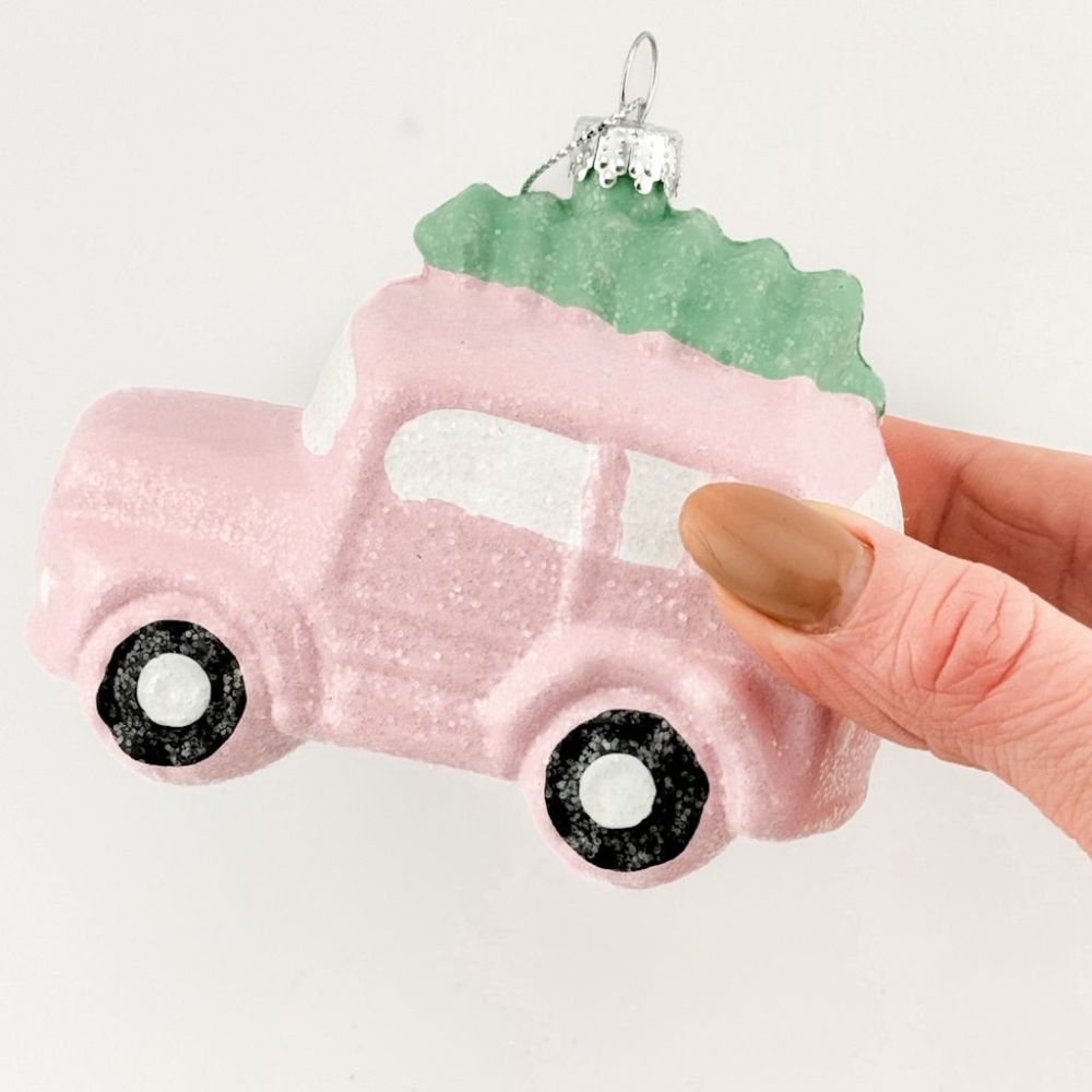 HomeBound by KY | Weihnachtskugel-Anhänger Auto mit Baum – Rosa
