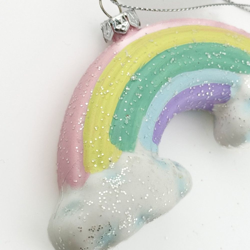 Verleihen Sie Ihrem Weihnachtsbaum einen farbenfrohen Touch mit diesem süßen Regenbogen-Anhänger! Die sanften Pastellfarben sorgen für einen frischen und verspielten Look und machen dieses Ornament zu einem fröhlichen Blickfang während der Feiertage.