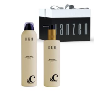 Eine schöne Geschenkbox, gefüllt mit allem, was man im Badezimmer braucht. Die Box hat einen schönen bunten Deckel und eine festliche goldene Schachtel. Erhältlich in den beiden beliebtesten Duftlinien der &C x JANZEN Kollektion.