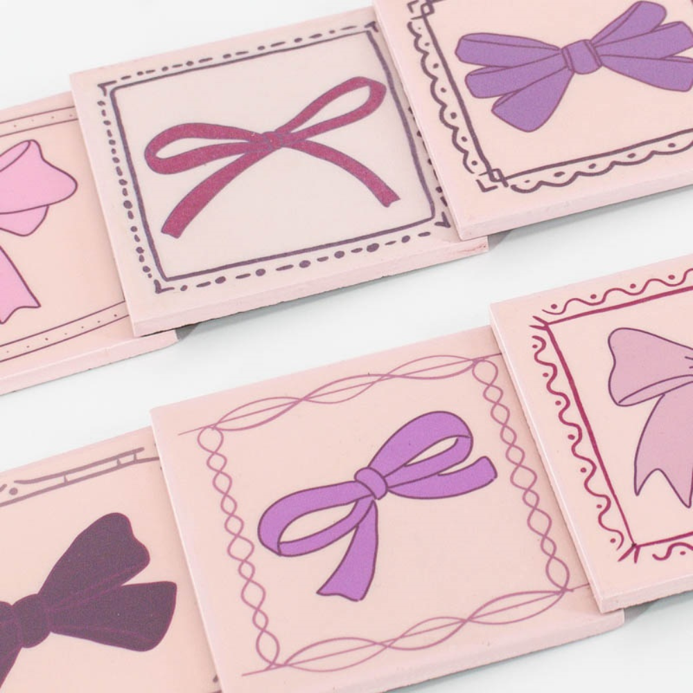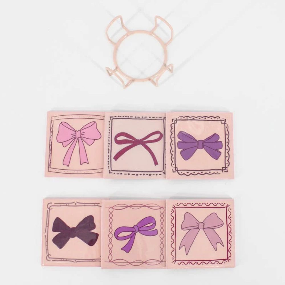 Set aus 6 Untersetzern mit Ständer – Motiv „Pink Bows 🎀“