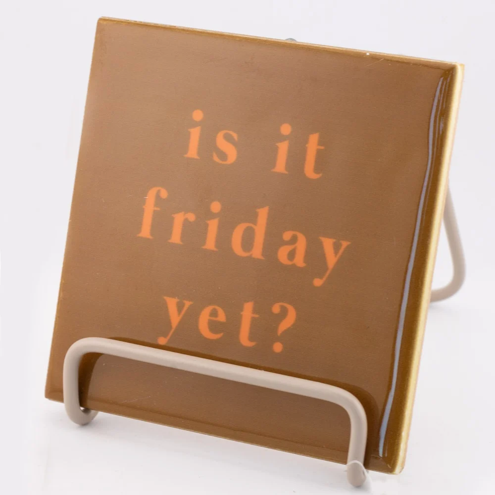 Kachel „Freitag“ – Wochenend-Stimmung! ✨ Es ist fast Wochenende, Zeit, in Freitagsstimmung zu kommen! Diese stilvolle Keramikfliese (10,5 x 10,5 x 0,5 cm) in warmen Braun- und Orangetönen bringt sofort eine gemütliche Atmosphäre in Ihr Zuhause. Perfekt für die Küche, das Wohnzimmer oder Ihren Arbeitsplatz, um das wunderbare Freitagsgefühl festzuhalten! Kombinieren Sie sie mit einem unserer passenden Halter und geben Sie ihr einen schönen Platz. Denn sagen Sie es selbst, wer liebt nicht die Freitagsstimmung?
