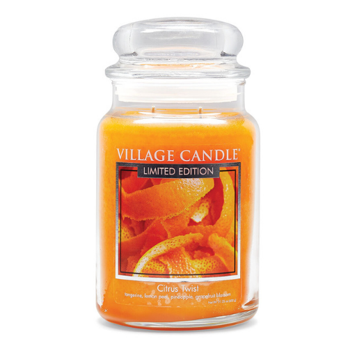 Village Candle Citrus Twist. Erfrischen Sie Ihr Zuhause mit einem Hauch von frischer Mandarine, spritziger Zitrone und süßer Ananas. Diese leuchtenden Duftakzente sorgen für Glücksgefühle und Freude.