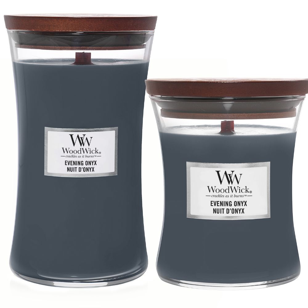 WoodWick Duo: Große & mittlere Kerze – Evening Onyx ☁️✨