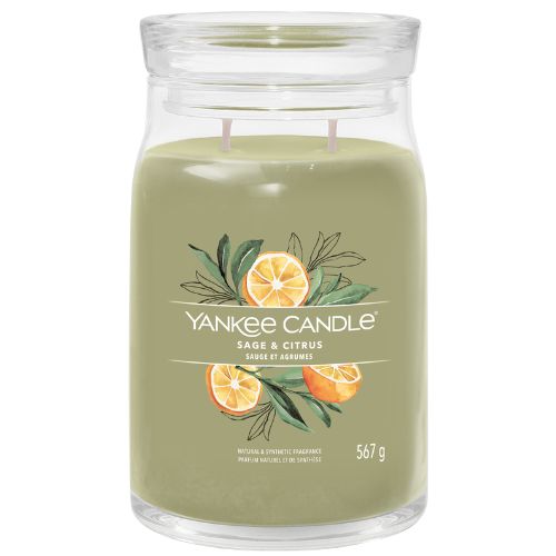 Yankee Candle Sage & Citrus isteine Mischung aus erdigen Salbeifarben mit einem Hauch von luxuriösem Talk und Zitrone-Limette, die eine natürliche Harmonie schaffen.