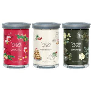 Drei wunderschöne Signature Large Tumblers in warmen Winterdüften und stilvollen Farben – perfekt, um das ganze Haus mit einem Hauch von Weihnachtsstimmung zu erfüllen.