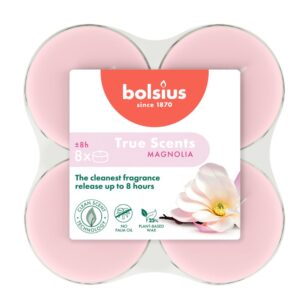 Die Bolsius Magnolia Maxi Fragrance Light verströmt den sanften, blumigen Duft der blühenden Magnolie.