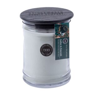 Bridgewater Candle Amber & Emerald. Erleben Sie die Essenz einer Berghütte am ersten Tag des Herbstes. Dieser Duft mit einem Hauch von Grapefruit, Geranie und Vetiver versetzt Sie in einen herbstlichen Wald, wenn Sie mit dem Fahrrad einen gewundenen Pfad entlang fahren, umgeben von üppigen, smaragdgrünen Hügeln….