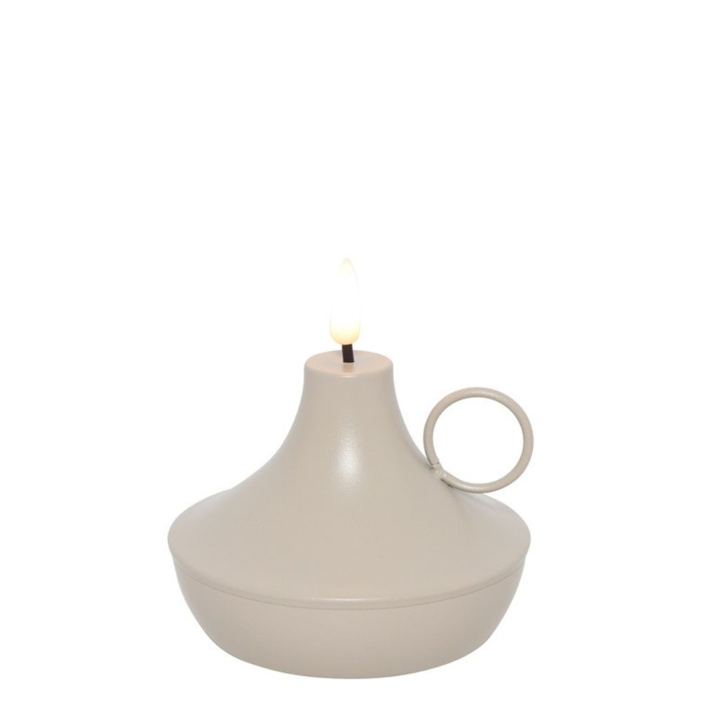 Stilvolle LED-Kerze in Form einer klassischen Öllampe. Die mattschwarze Optik und die 3D-Flammen-LED sorgen für ein warmes, realistisch flackerndes Licht. Sicher, einfach und mit 6-Stunden-Timer.