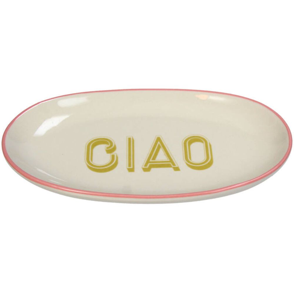 Holen Sie sich den Retro-Charme Italiens auf Ihren Tisch mit dem Kersten Teller Oval Ciao Bianco Sporco!