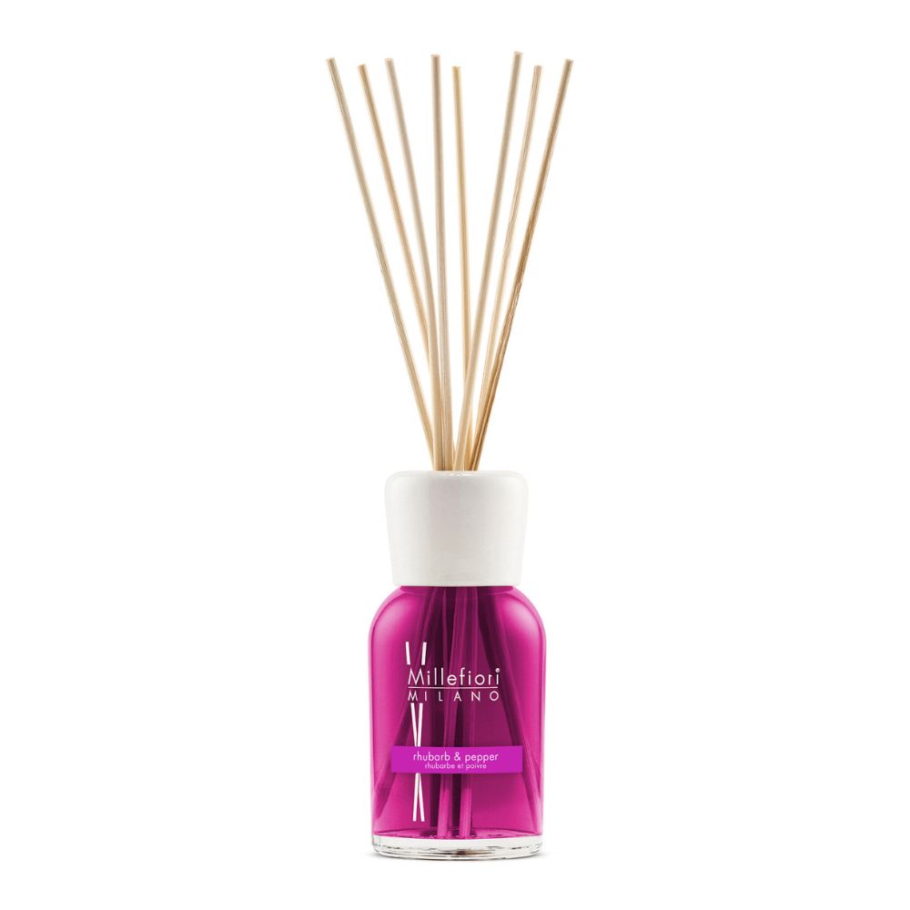 Millefiori Milano Reed Diffuser Rhubarb & Pepper 500 ml sorgen 12-15 Monate lang für einen wunderbaren Duft in Ihrem Zuhause.