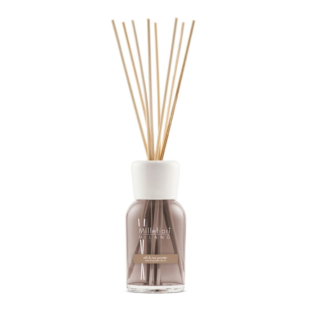 Millefiori Milano Reed Diffuser Silk & Rice Powder 500 ml sorgen 12-15 Monate lang für einen wunderbaren Duft in Ihrem Zuhause.