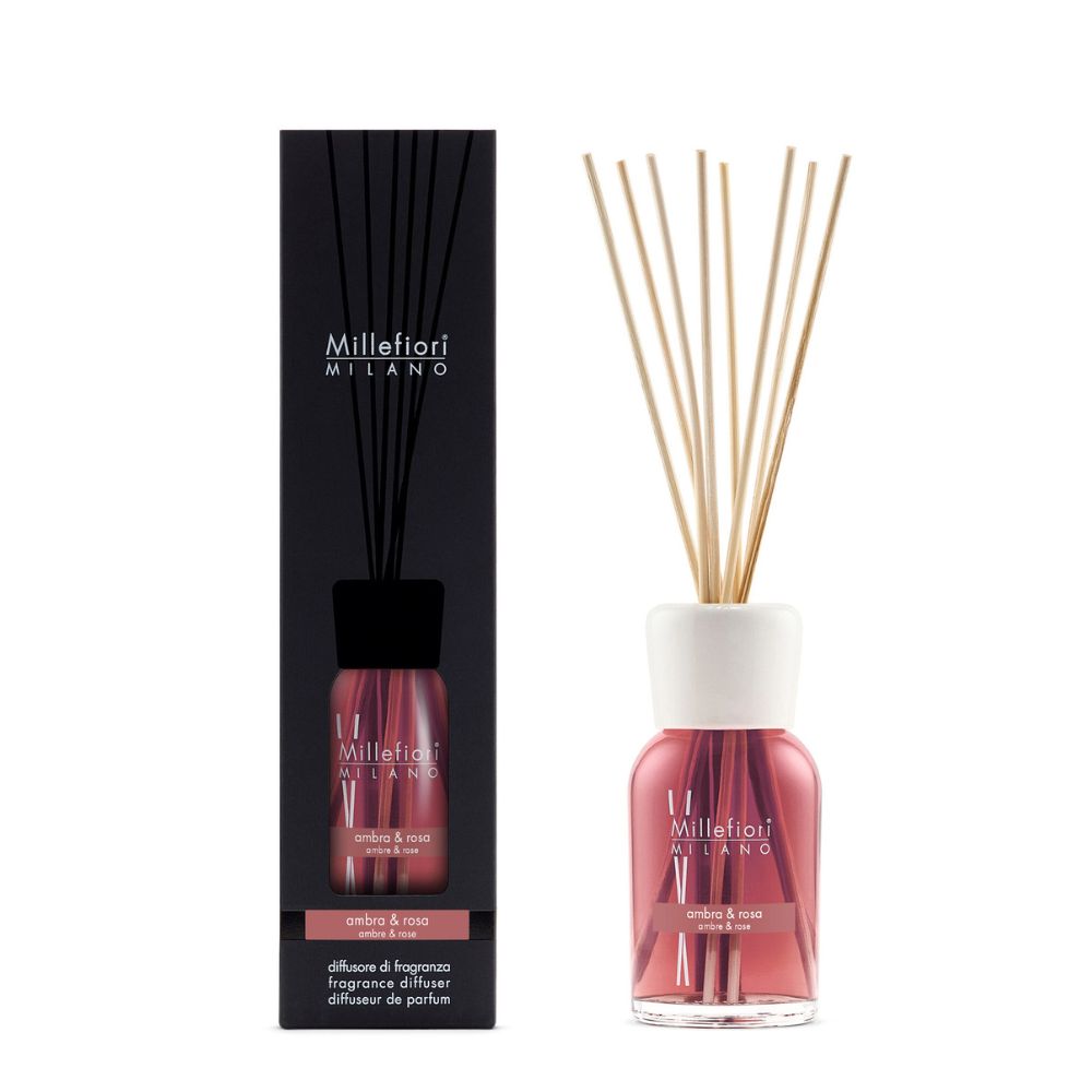 Millefiori Milano Reed Diffuser Ambra Rosa 250 ml sorgen 6-7 Monate lang für einen wunderbaren Duft in Ihrem Zuhause.