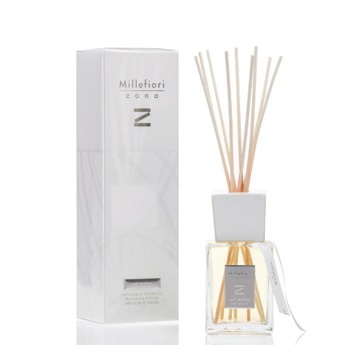 Millefiori Milano Reed Diffuser Soft Leather 500 ml bieten 12-15 Monate lang einen wunderbaren Duft in Ihrem Zuhause.